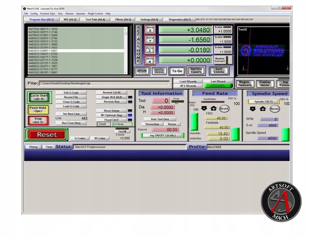 Bez licencji Mach3 będzie działał w trybie demonstracyjnym.