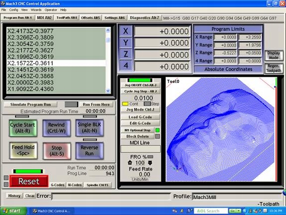 Mach3 działa na większości komputerów z systemem Windows, aby kontrolować ruch silników (krokowych i serwo) poprzez przetwarzanie kodu G.
